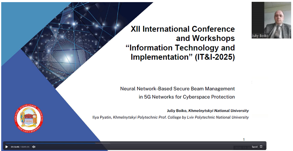 У роботі конференції взяв участь гарант магістерської програми «Електронні системи та мережі комунікацій», професор кафедри телекомунікацій, медійних та інтелектуальних технологій Юлій БОЙКО, який на пленарній сесії представив наукову доповідь: “Neural Network-Based Secure Beam Management in 5G Networks for Cyberspace Protection”.