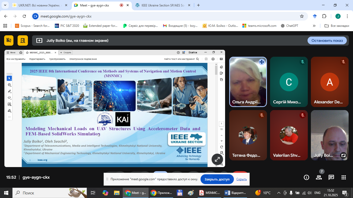 У жовтні 2025 року професор кафедри телекомунікацій, медійних та інтелектуальних технологій Хмельницького національного університету Юлій БОЙКО, гарант освітньої програми «Електронні системи та мережі комунікацій» спеціальності G5 — «Електроніка, електронні комунікації, приладобудування та радіотехніка», взяв участь у 2025 IEEE 8th International Conference on Methods and Systems of Navigation and Motion Control (MSNMC), яка входить до міжнародних наукометричних баз Scopus та Web of Science і проходила під егідою Інституту інженерів з електротехніки та електроніки (IEEE) на базі Державного університету «Київський авіаційний інститут». Конференція об’єднала провідних науковців і фахівців з різних країн світу у галузі навігаційних систем, керування рухом, телеметрії та аерокосмічної інженерії, сприяючи міждисциплінарному обміну знаннями та розвитку інновацій у сфері сучасних комунікаційних і транспортних технологій (https://msnmc.ieee.org.ua/).
