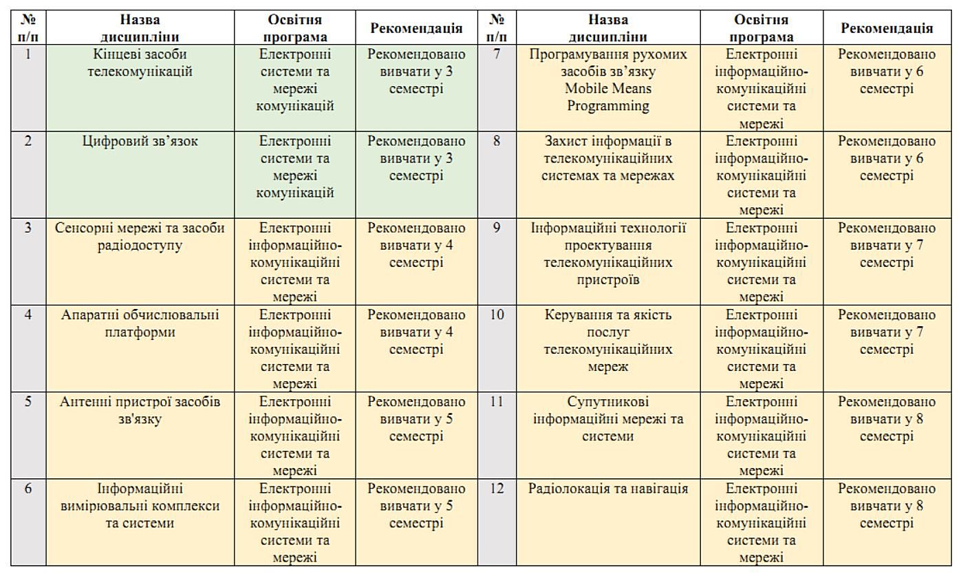 Рекомендовані дисципліни для освітнього рівня G5 “Бакалавр”