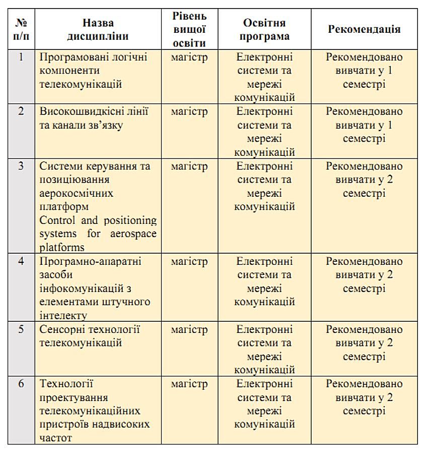 Рекомендовані дисципліни для освітнього рівня G5 “Магістр”