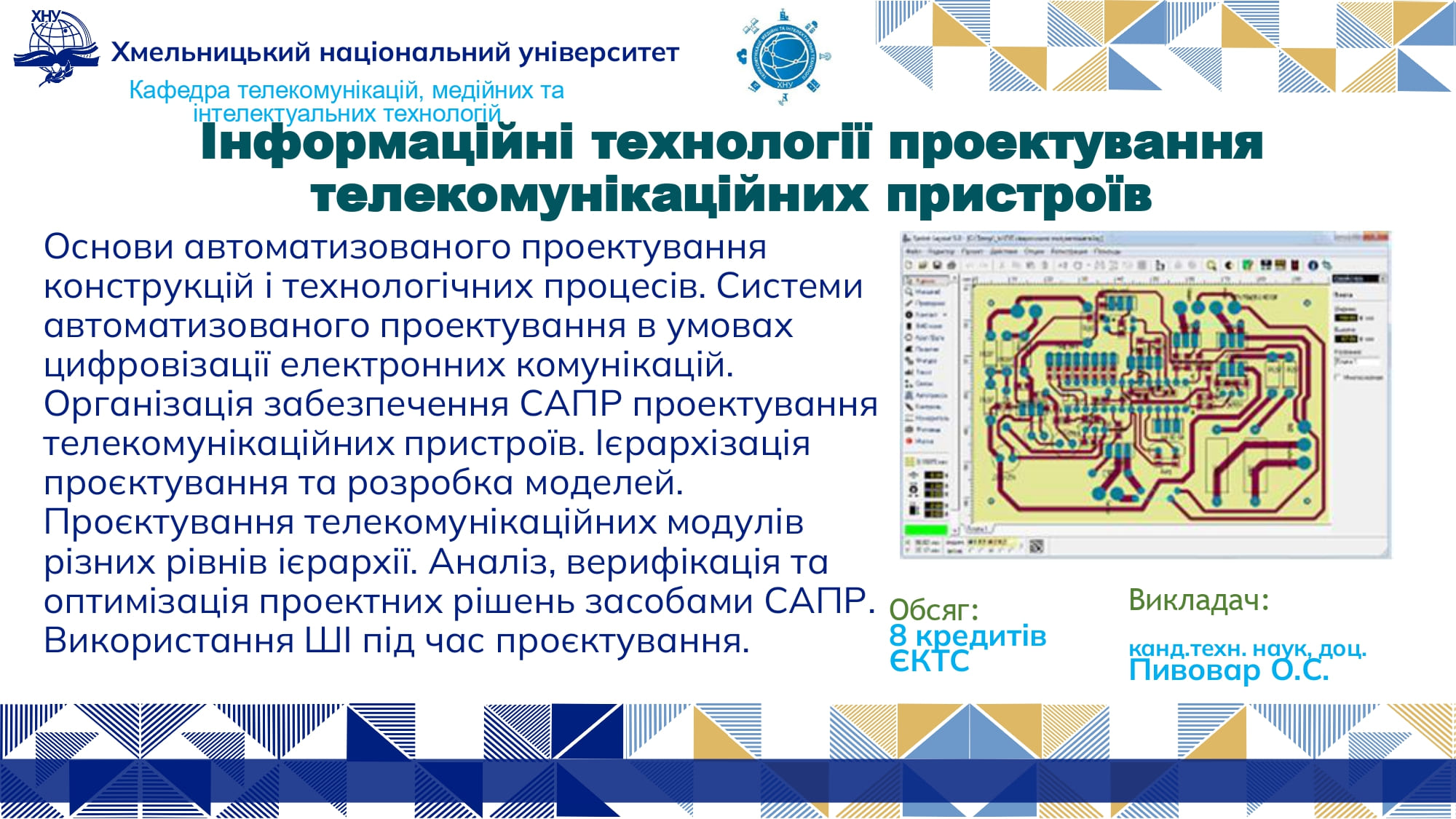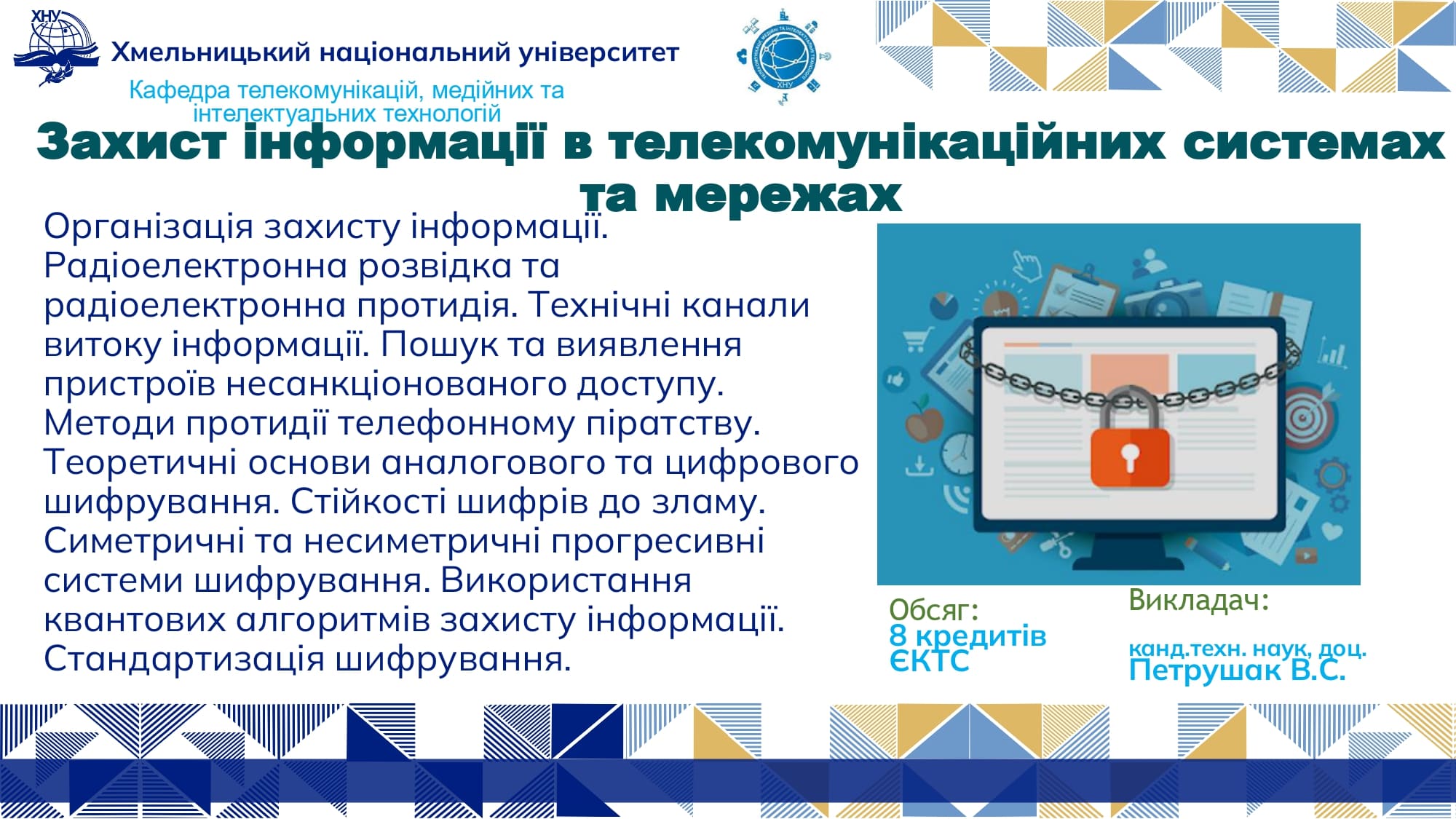 Від кафедри телекомунікацій, медійних та інформаційних технологій (ТМІТ) блок вибіркових дисциплін представляли завідувач кафедри ТМІТ, докт. техн. наук, професор Сергій ПІДЧЕНКО та гарант ОП “Електронні інформаційно-комунікаційні системи та мережі”, канд. техн. наук, доцент Олег Пивовар.